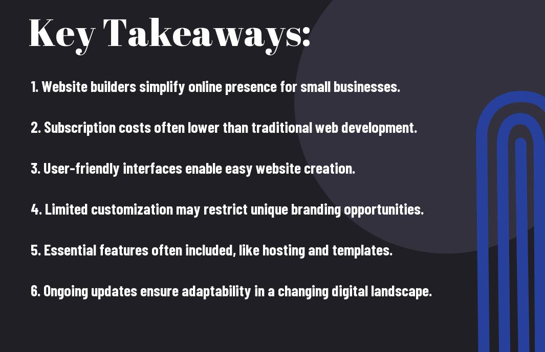 With the digital landscape evolving rapidly, you may be wondering if website builders are truly cost-effective solutions for your small business. These platforms promise user-friendly design and functionality at a fraction of the cost of hiring a web developer. However, as you navigate your options, it’s important to weigh the benefits against potential limitations that might affect your online presence. From design flexibility to hidden costs, this post will guide you through the factors you should consider before choosing a website builder for your enterprise.
