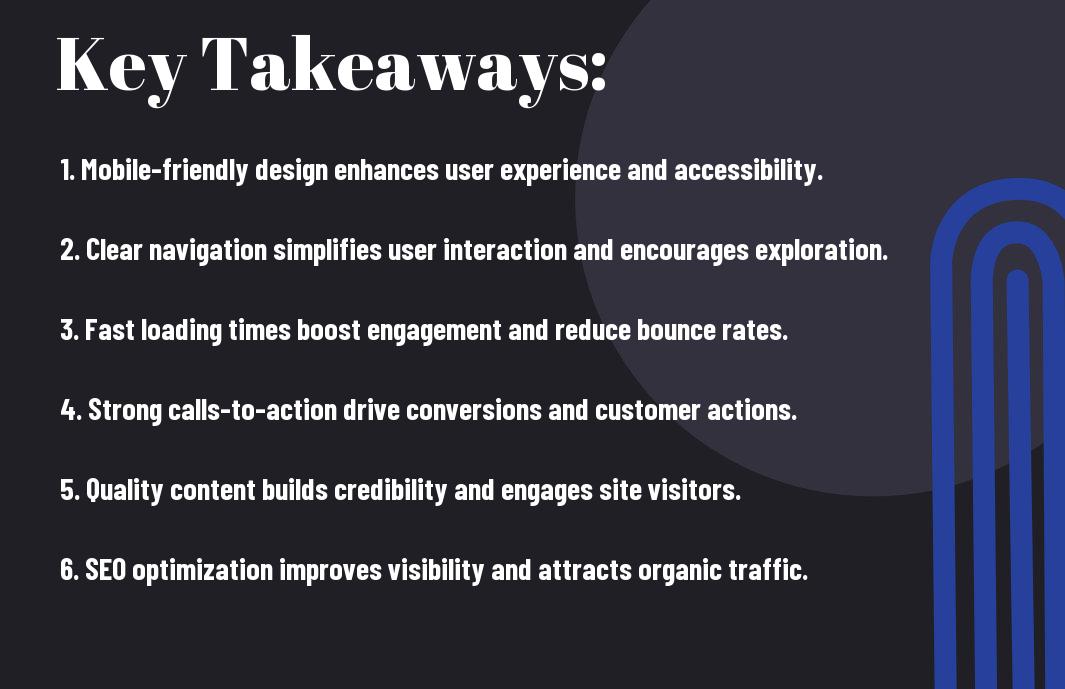 You want your small business website to stand out and drive significant growth. To achieve this, it must have features that enhance user experience and optimize for search engines. Incorporating a mobile-responsive design ensures that visitors can navigate easily on any device, while fast loading times keep potential customers engaged. A clear call-to-action and integrated SEO strategies can be game-changers, ultimately leading to increased conversions and sales. Understanding these vital features will put you on the right path to achieving immense success online.